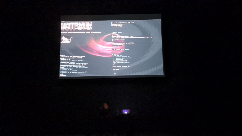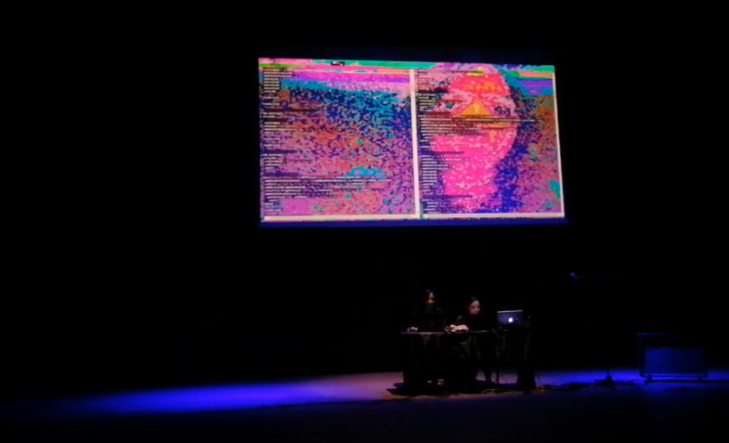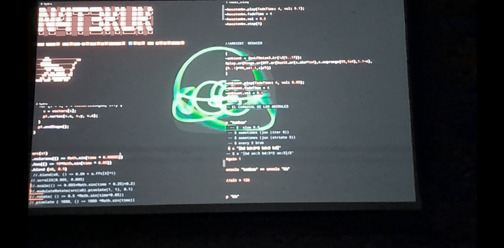 Con 4L3PH estuvimos participando, recientemente, en la segunda versión de LUMA, festival de imágenes experimentales en movimiento, de la Carrera y Departamento de Artes Visuales de la Universidad Javeriana de Bogotá. Compartimos algunas imágenes y video de la performance de nuestro hacker ciberchamánico, Nelson Vera (M0H4N): «Natekuk: un mito ciber-carnavalesco para el Novaceno» (obra de lo que denominamos «Alg-Live Cinema (Live Cinema + Live Coding)), docente de la carrera; y, por demás, nos emociona compartir apartes de la performance de Live Coding, “Ana Karenina”, llevada a cabo por estudiantes de su curso “Intermedia Redes”, quienes estuvieron simplemente alucinantes, atrapándonos con extraordinarias imágenes y sonidos en vivo.