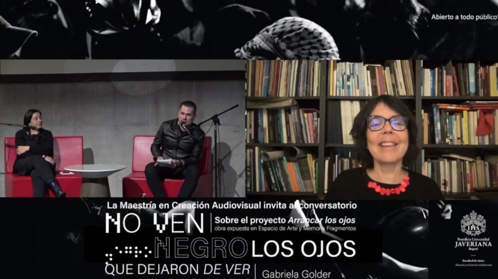 Hola, queridos amigos 4L3PHianos. Grata e inspiradora conversación, el día de ayer, 28 de septiembre, con la reconocida artista audiovisual y pensadora argentina Gabriela Golder, alrededor de su impactante obra “Arrancar los ojos”, bajo la organización e invitación de la Maestría en Creación Audiovisual de la Pontificia Universidad Javeriana.