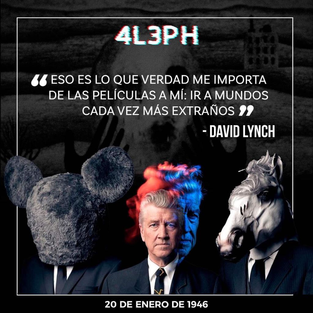 #Undíacomohoy un 20 de enero de 1946, nacía el recién trascendido de este plano, legendario, iconoclasta y genial cineasta estadounidense, pintor, artista visual, fotógrafo, diseñador, escritor, aventurado y vanguardista compositor, productor de música electrónica, diseñador y artista sonoro, y también explorador místico del subconsciente y el espacio interior, nuestro amado e inigualable “reportero del tiempo… de nuestros extraños tiempos”, David Keith Lynch. Nuestro adorado, venerado e iluminado maestro Lynch nos obsequió, a lo largo de su vida y carrera artística, inquietantes, asombrosas, perturbadoras y a la vez muy bellas creaciones (hoy todas obras de culto), como Eraserhead, The Elephant Man, Blue Velvet, Lost Highway, Mullholland Drive, Wild at Heart, Inland Empire; su adaptación del clásico de la ciencia ficción, Dune, de Frank Herbert; y sus aclamadas series Twin Peaks y Rabbits; obras en las que con su consabida narrativa fragmentada, experimental, rupturista, abstracta, surreal y delirante, ha solido confrontar nuestras certezas humanas y perturbar nuestro inconsciente colectivo, desplegando realidades oníricas y puestas en escenas alucinantes que han terminado por sumergirnos y dejarnos atrapados —como si de una suerte de adicción inexplicable se tratara— en ese universo suyo que cobró su propio adjetivo: “Lyncheano”. Gracias eternas por tanta creatividad, riesgos, experimentación, bondad, sabiduría y motivación, y por todos esos mundos extraños —que sólo permite el cine, según tus palabras—, que nos han marcado, influenciado y, sobre todo, inspirado a seguir creando, sin concesiones, mundos diferentes, a través del arte. Con 4L3PH celebramos —y celebraremos siempre— su vida, obra y memoria (qué bueno estar vivos en épocas del maestro Lynch), en procura de continuar con esas enseñanzas, meditaciones, iluminaciones y pesquisas de ideas trascendentales, en procura de seguir “atrapando ese pez grande y dorado”. A tu salud, siempre, querido genio!!! 🎂🎥🐠🖤 ✨