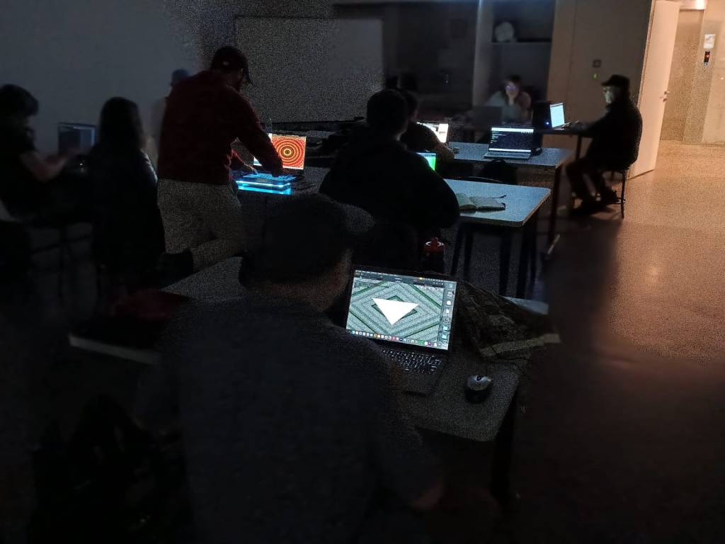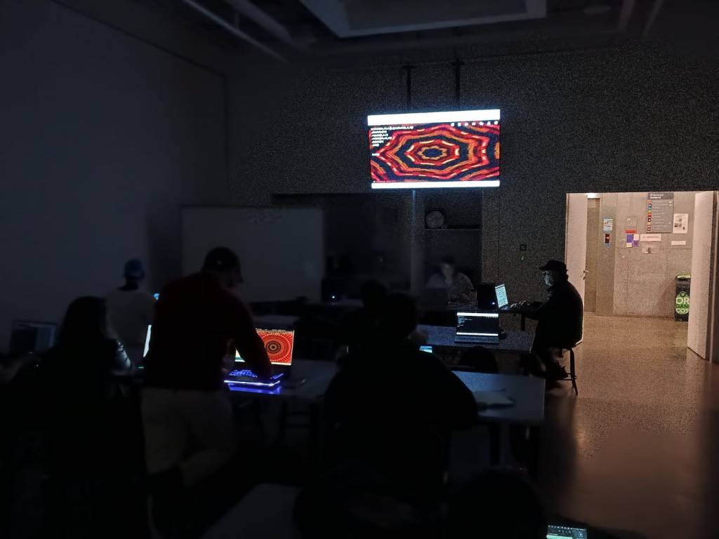 🔥 Fue potente ver cómo se arriesgaron a cacharrear, a modificar argumentos sin tener todas las certezas, y a componer en tiempo real entre varias manos, escribiendo código, improvisando, dialogando, creando junt_s. Uno de ellos incluso se lanzó a improvisar en vivo con programación creativa, sumando además música algorítmica con instrumentos análogos, abriendo el espacio a la multi-medialidad e inter-medialidad, y al cruce sensible entre lo humano, lo digital y lo colectivo.