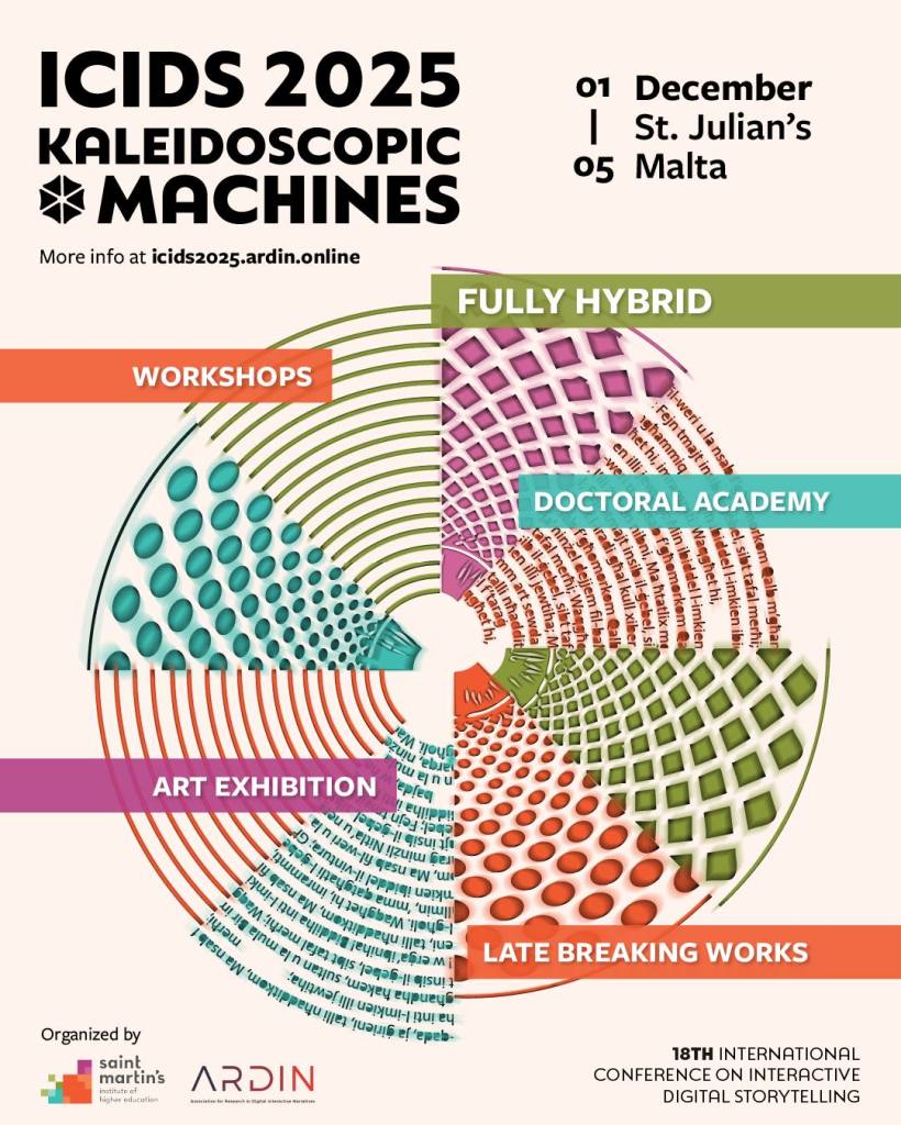 This Monday, December 1st, from 19:00–20:00 (Malta) / 13:00–14:00 (Colombia), we officially open the online art exhibition of the 18th International Conference on Interactive Digital Storytelling — ICIDS 2025 with a live broadcast.