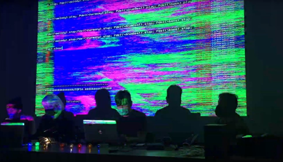 «Code-Labóreme con la salida» performance de Alg-Live Cinema (Live Cinema con Live Coding)